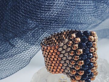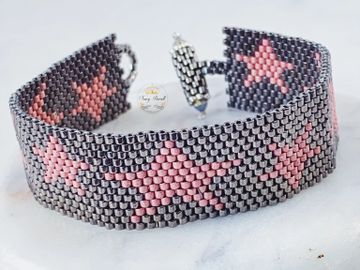 Star Bracelet Embroidered in Miyuki seed beads (Matte Nickel and Rose) with Swarovski crystals on closure