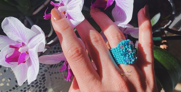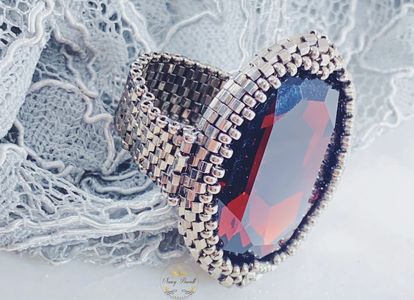 Ring Embroidered with Miyuki Seed Beads and Swarovski crystals