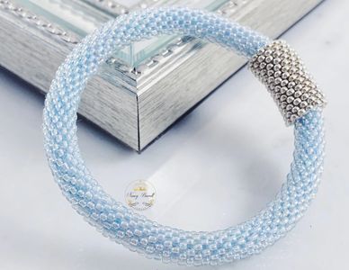 Ring Embroidered with Swarovski crystal pearls, Czech crystals and Miyuki Seed Beads (Size #6.0 - 6.5)