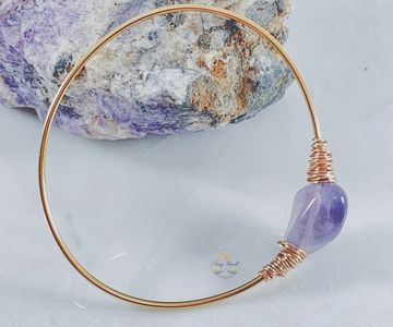 Wire Wrapped Bracelet with golden colored AAA Copper wires and Amathyst natural stone