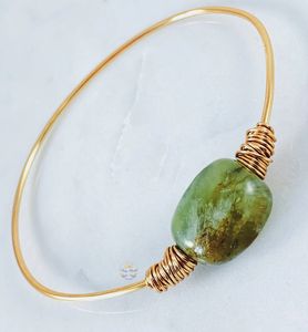 Wire Wrapped Bracelet with golden colored AAA Copper wires and New Jade natural stone