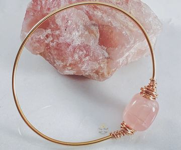 Wire Wrapped Bracelet with golden colored AAA Copper wires with Rose Quartz